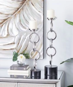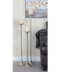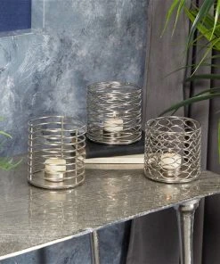 Grayson Lane Set of 3 4-in x 4-in Modern Candle Holders -Silver Iron
