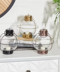 Grayson Lane Set of 3 7-in x 8-in Rustic Lantern – Multi Coloured Metal