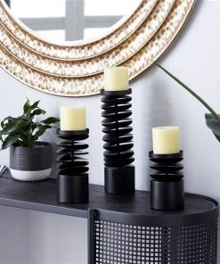 Grayson Lane Set of 3 6-in, 8-in, 12-in Contemporary Candle Holder – Black Metal
