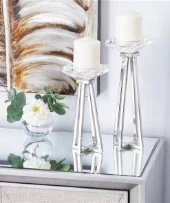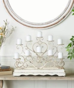 Grayson Lane 1-Candle White Metal Pillar Candle Holder – Set of 2