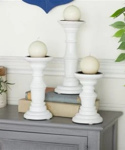 Grayson Lane 1-Candle White Wood Pillar Candle Holders – Set of 3