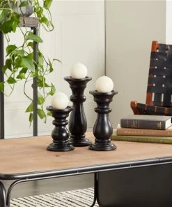 Grayson Lane 1-Candle Wood Pillar Candle Holders – Black – Set of 3