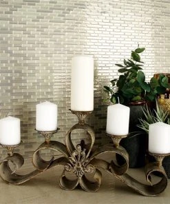GRAYSON LANE 11 In. x 23 In. Rustic Candlestick Holders Grey Iron