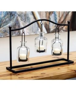 Grayson Lane 10-in x 6-in Traditional Black Glass Hurricane Candle Holder