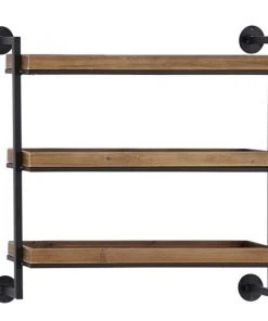 Grayson Lane 7-in x 26-in Brown Metal and Wood Industrial Wall Shelves
